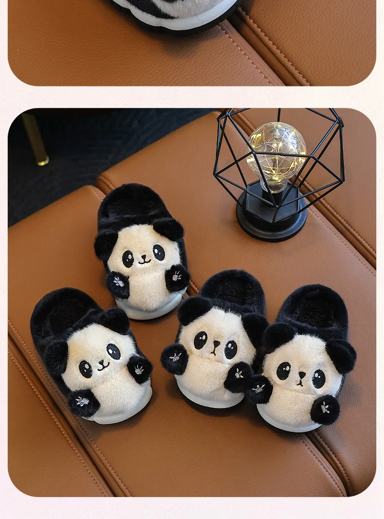 2026 New Cute Children's Cartoon Panda Winter Slippers Comfortable Warm Cotton Shoes Boys Girls Indoor Home Fluffy Slippers
